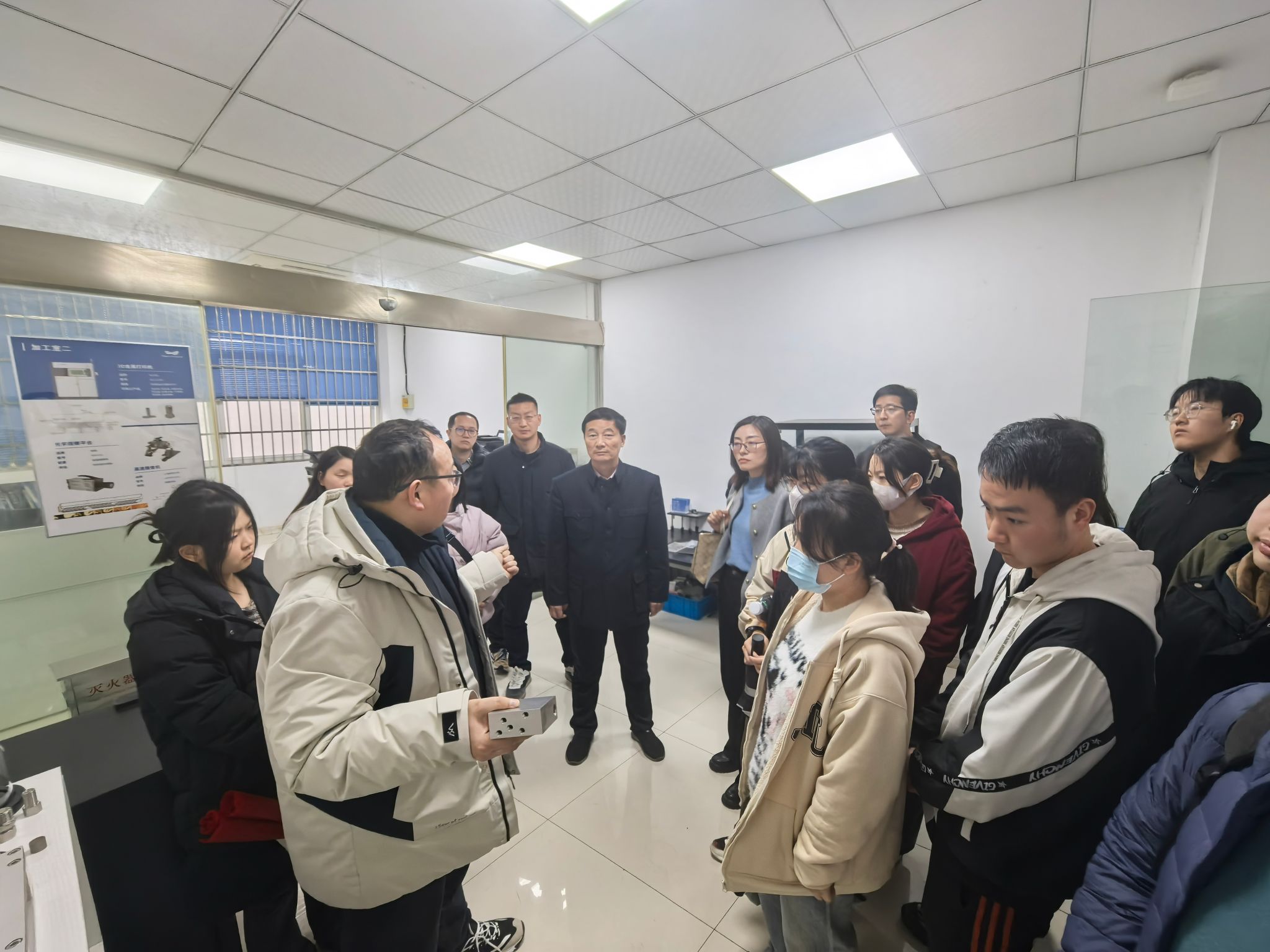 一行参观了公司展厅,郑总详细介绍了公司的发展历程、核心产品、研发流程、盈利模式、人才需求和薪酬体系等情况。随后,校企双方就产学研合作和同学们关注的职业发展路径、职业发展前景等问题进行了深入的座谈交流。