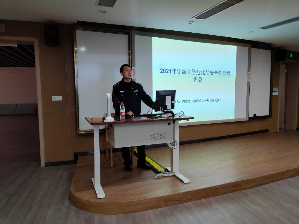 北区2号教学楼306室顺利举行。本次活动特别邀请了宁波市公安局镇海分局治安大队周黎冰警官和江北区消防救援大队刘慧明副大队长分别就危险化学品安全管理和消防安全做了精彩的讲座。本次讲座采用线下和线上直播相结合的方式,现场到会人数约150人,除了台湾三级片