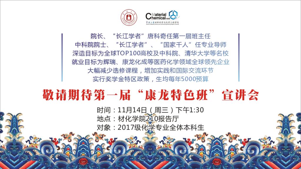 兹定于11月14日召开第一届“康龙特色班”宣讲会,通知如下: