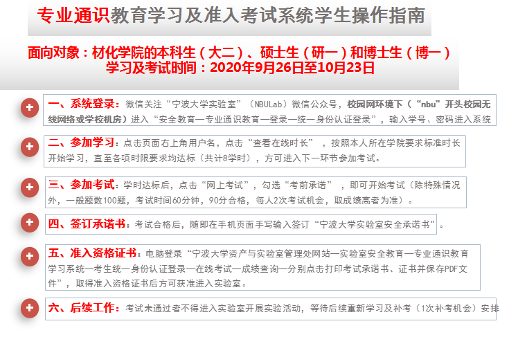 实验室管理专项目标考核的要求,每一位需要进入实验室学习和工作的师生必须进行实验室安全的在线学习、考试,成绩合格方可进入实验室工作学习(准入制),考核未合格的学生严禁进入实验室,其名单将在台湾三级片