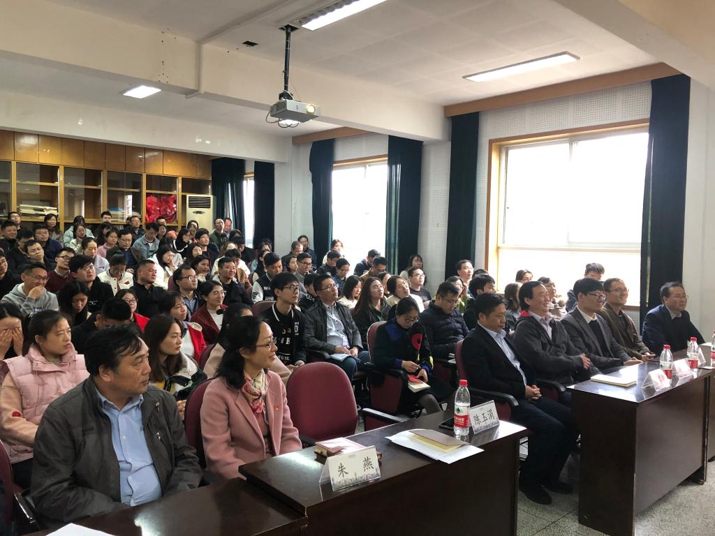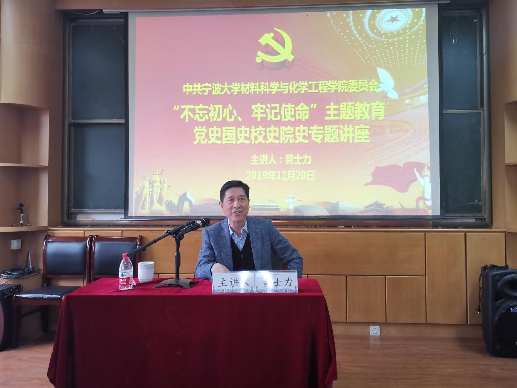 党委在龙赛理科南楼210报告厅举办“不忘初心、牢记使命”主题教育——党史国史校史院史专题讲座。宁波市经促会副会长兼秘书长黄士力作题为《回望历史显初心,展望未来扛使命》专题讲座。校党委委员张真柱,学院党政班子成员和全体师生党员等150多人参加了此次学习。