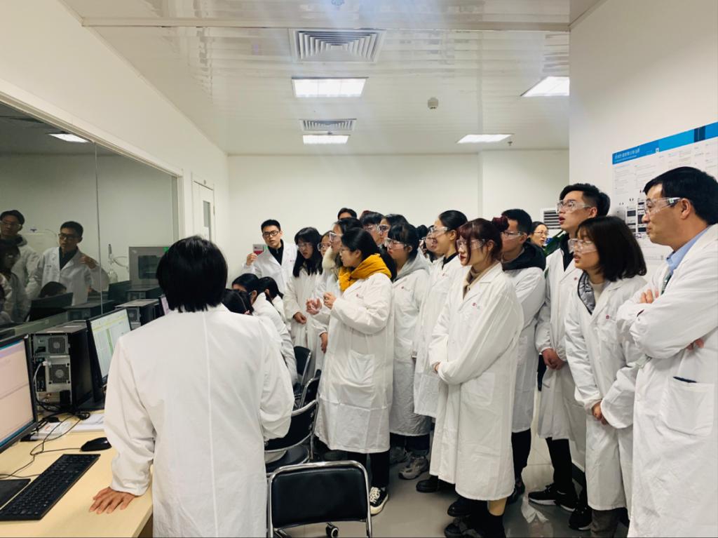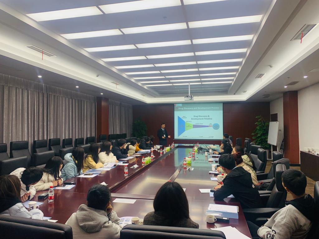 首先,付建民就康龙化成公司企业运营及台湾三级片做了全面介绍并进行了交流,现场解答学生提出的问题。现场气氛十分活跃。随后,学生们在王有龙及相关实验室负责人带领下先后参观了公司有机合成实验室,分析实验室,DELT实验室,并了解了GMP生产的过程,通过现场的参观,感受现代化制药工作的生产工艺方法。