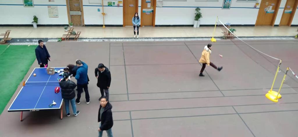 今天中午进行的是踢毽子和跳绳,参与度也挺高。从楼上望去,飞舞和跳绳,翻飞的毽子和矫健的身影以及阵阵欢笑给学院增加了不少活力。