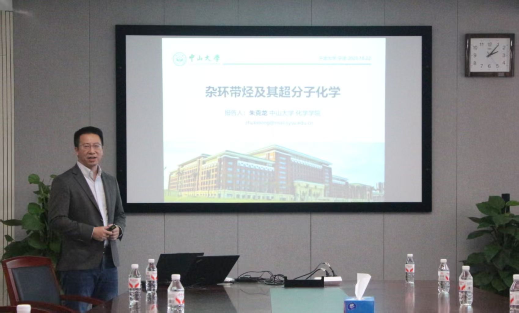 杰出校友、中山大学化学学院朱克龙教授担任主讲,作题为《杂环带烃及其超分子化学》的专题学术报告,吸引了众多师生到场聆听。