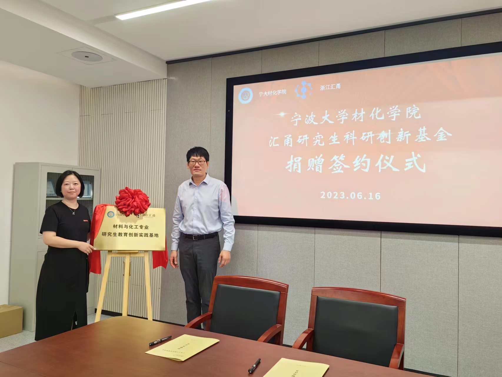 汇甬研究生教育创新实践基地科研创新基金捐赠仪式在学院会议室举行,院党政班子成员、教师代表及学生代表共同参加,签约仪式由仪式由院党委书记陶娟主持。
