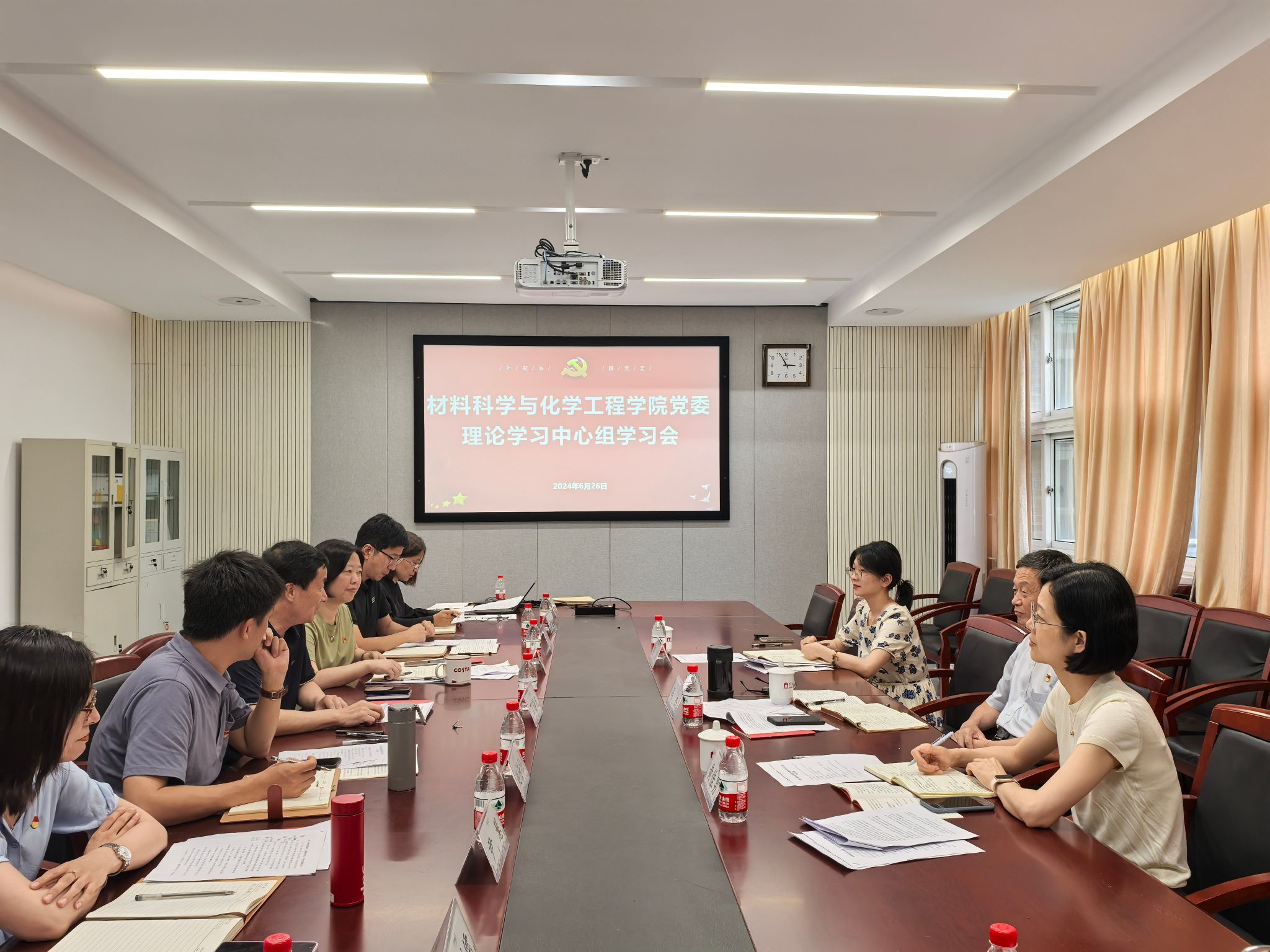 党委理论学习中心组全体成员参加学习会,会议由院党委书记陶娟主持。