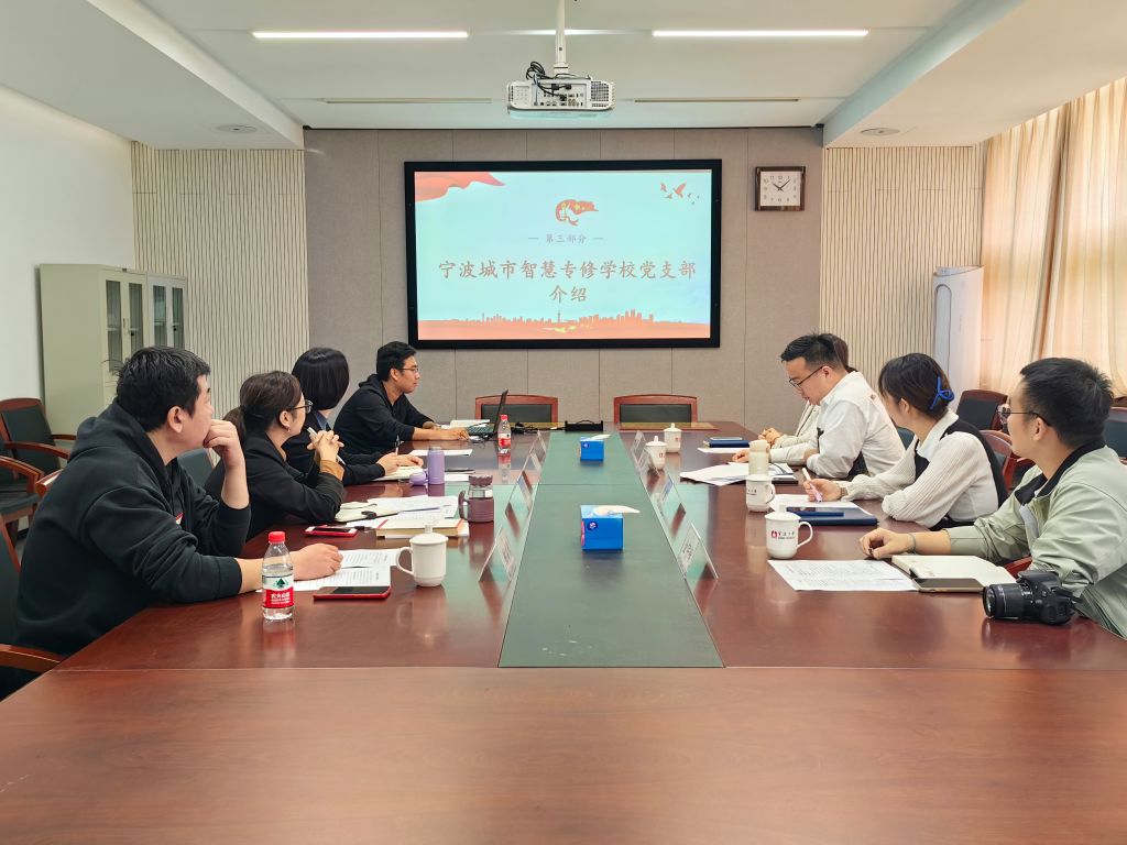 行政教辅教工党支部与宁波城市智慧专修学校党支部开展支部“党建共建”活动。学院党委书记陶娟、行政教辅教工党支部书记邓方、继续教育办毕文超,学工办韩鸿儒,宁波城市智慧专修学校党支部书记陈超,宣传委员黄盛、组织委员余王芳、团学负责人金宇峰参加会议。会议由毕文超主持。