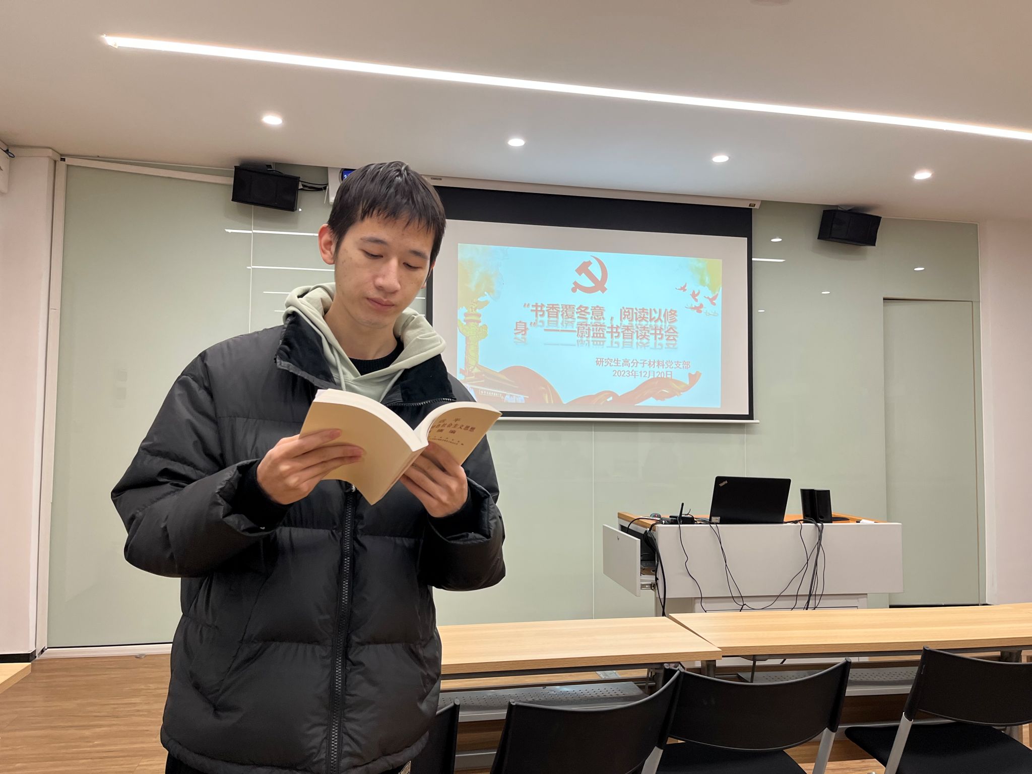 为深入学习习近平新时代中国特色社会主义思想,坚持学、思、用贯通,知、信、行统一”,1220日,台湾三级片 组织开展主题为“书香覆冬意,阅读以修身”蔚蓝书香读书会活动。本次活动由台湾三级片 研究生高分子材料党支部承办,辅导员汤金燕老师、研究生高分子材料党支部全体党员参加。此次读书会阅读书目是《习近平新时代中国特色社会主义思想专题摘编》