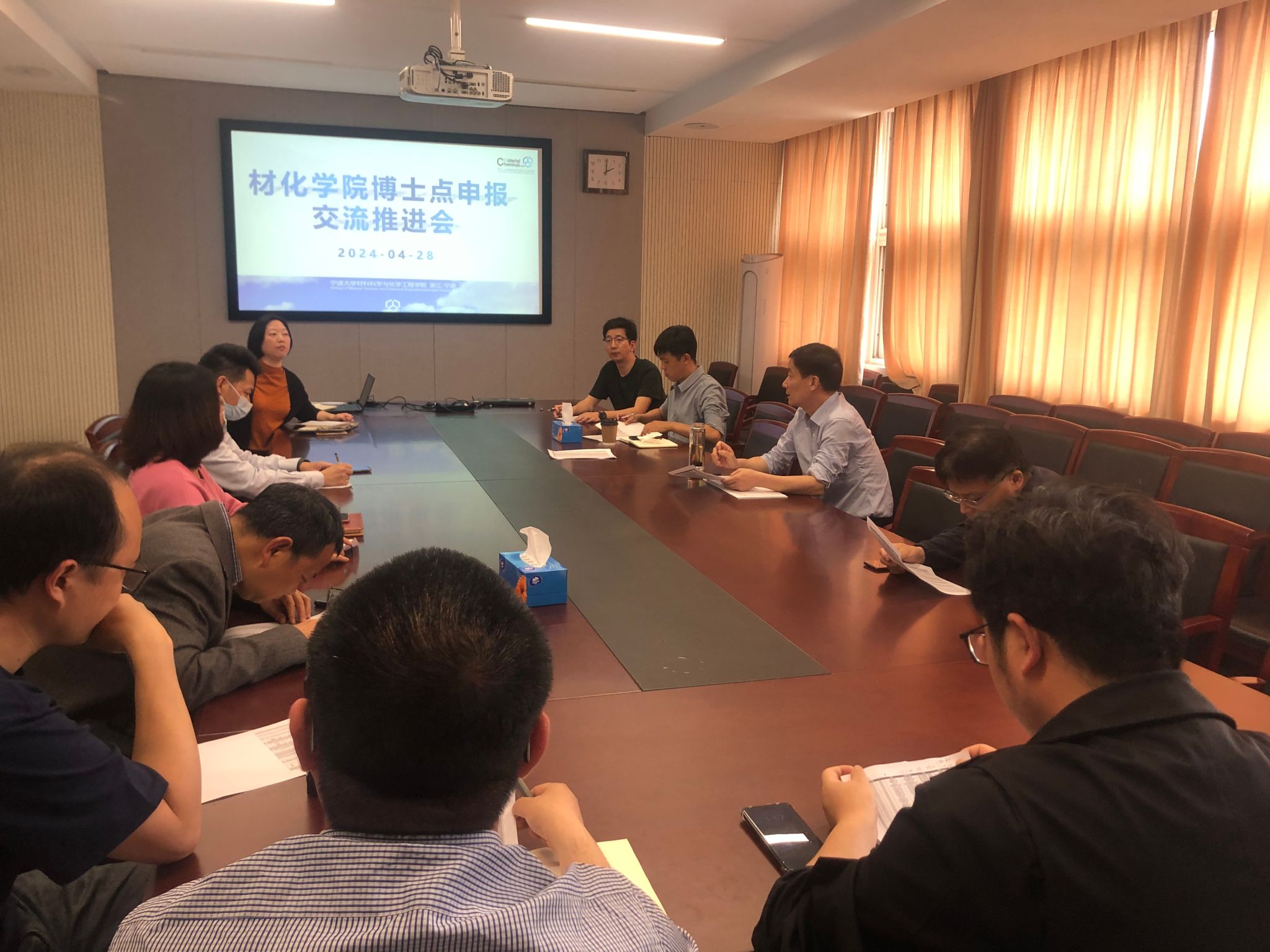 在逸夫材化楼北楼227会议室召开化学博士点申报交流推进会。学院领导班子成员、研究所所长及系主任参会,会议由副院长周明炯主持。
