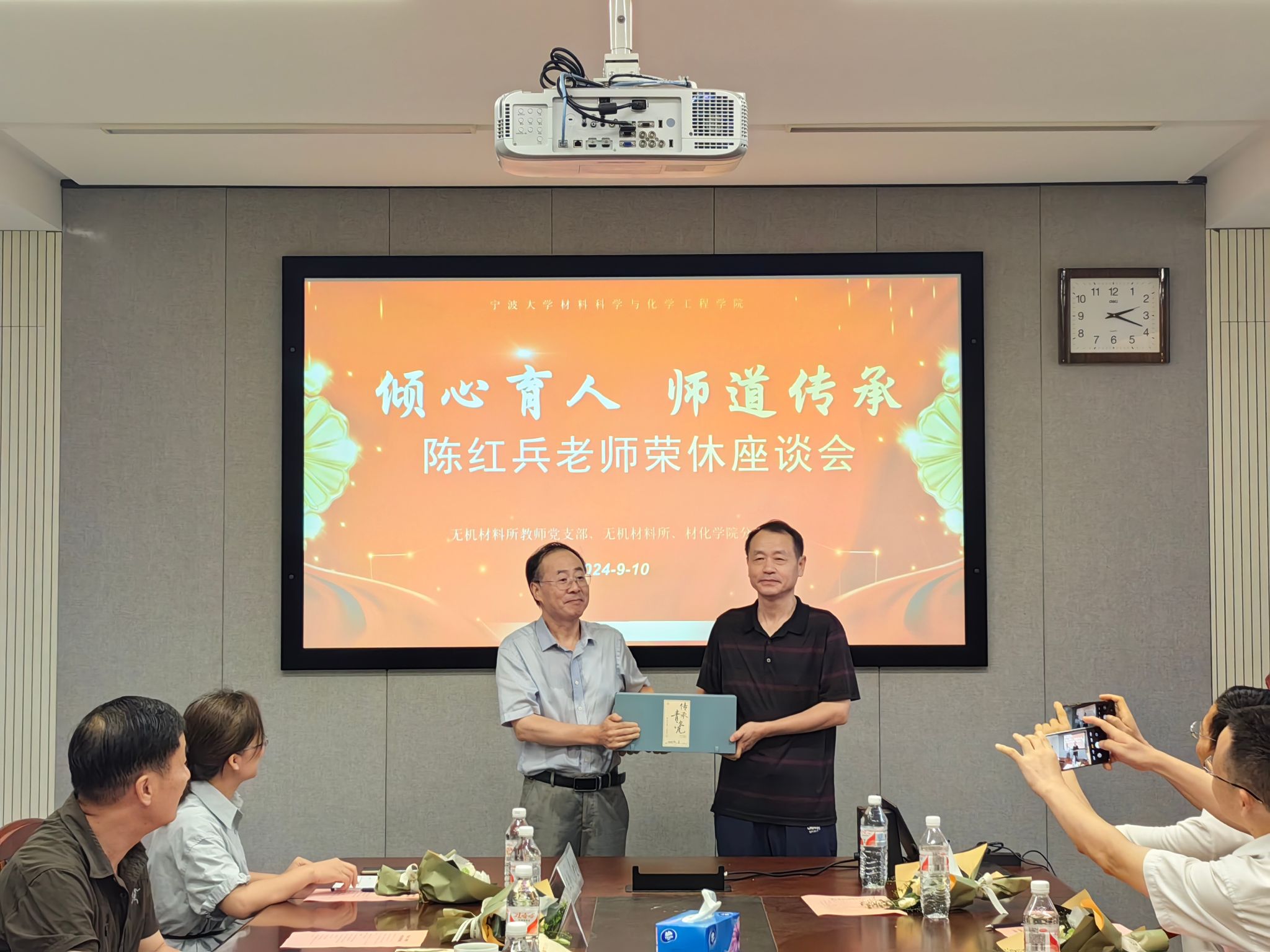 在教师节当天,学院无机材料研究所教师党支部、无机材料研究所、学院分工会共同举办陈红兵老师荣休座谈会,学院党政班子领导、分工会主席和无机材料研究所教师代表们参加座谈,气氛温馨而热烈。
