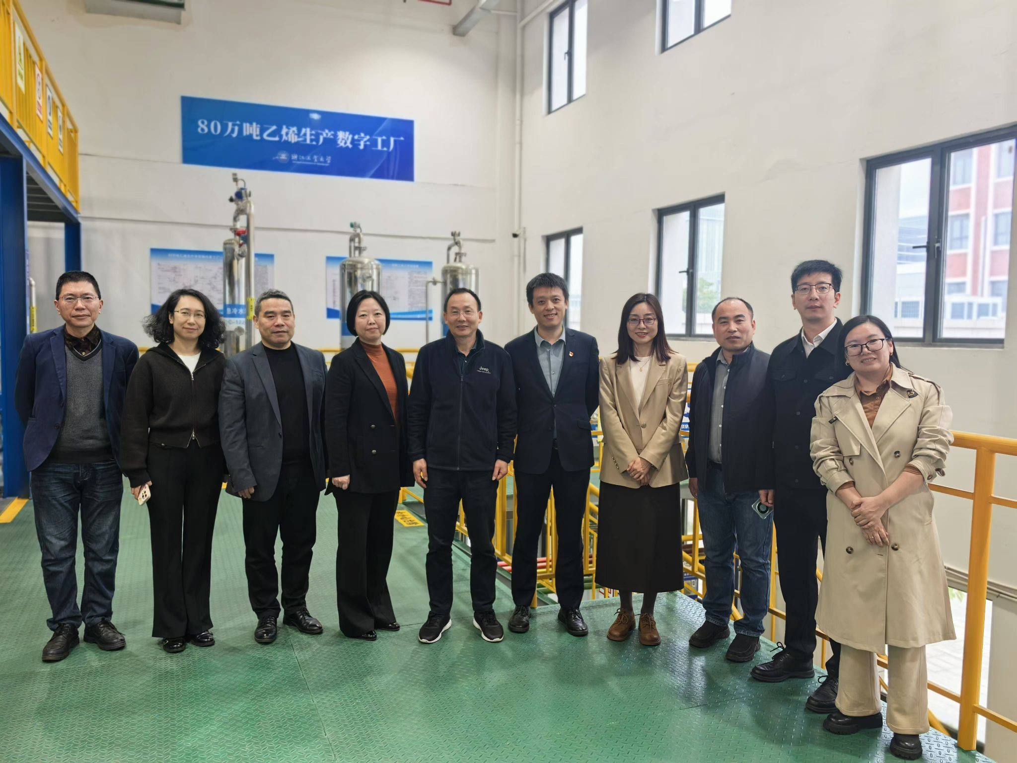 在浙江工业大学化工学院,领导班子一行参观了化工学院安全技能实训示范基地、80万吨乙烯生产数字工厂、化工学院展厅和分析测试中心。在座谈交流会上,浙江工业大学化工学院副院长聂勇一就学院历史沿革、师生规模、学科专业布局、博硕人才培养及科研与平台建设等方面做了详细的介绍,分享了浙工大化工学院专业博士点申报经验和心得。