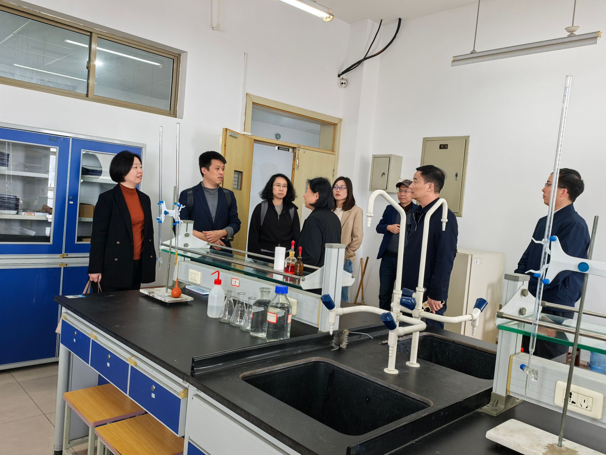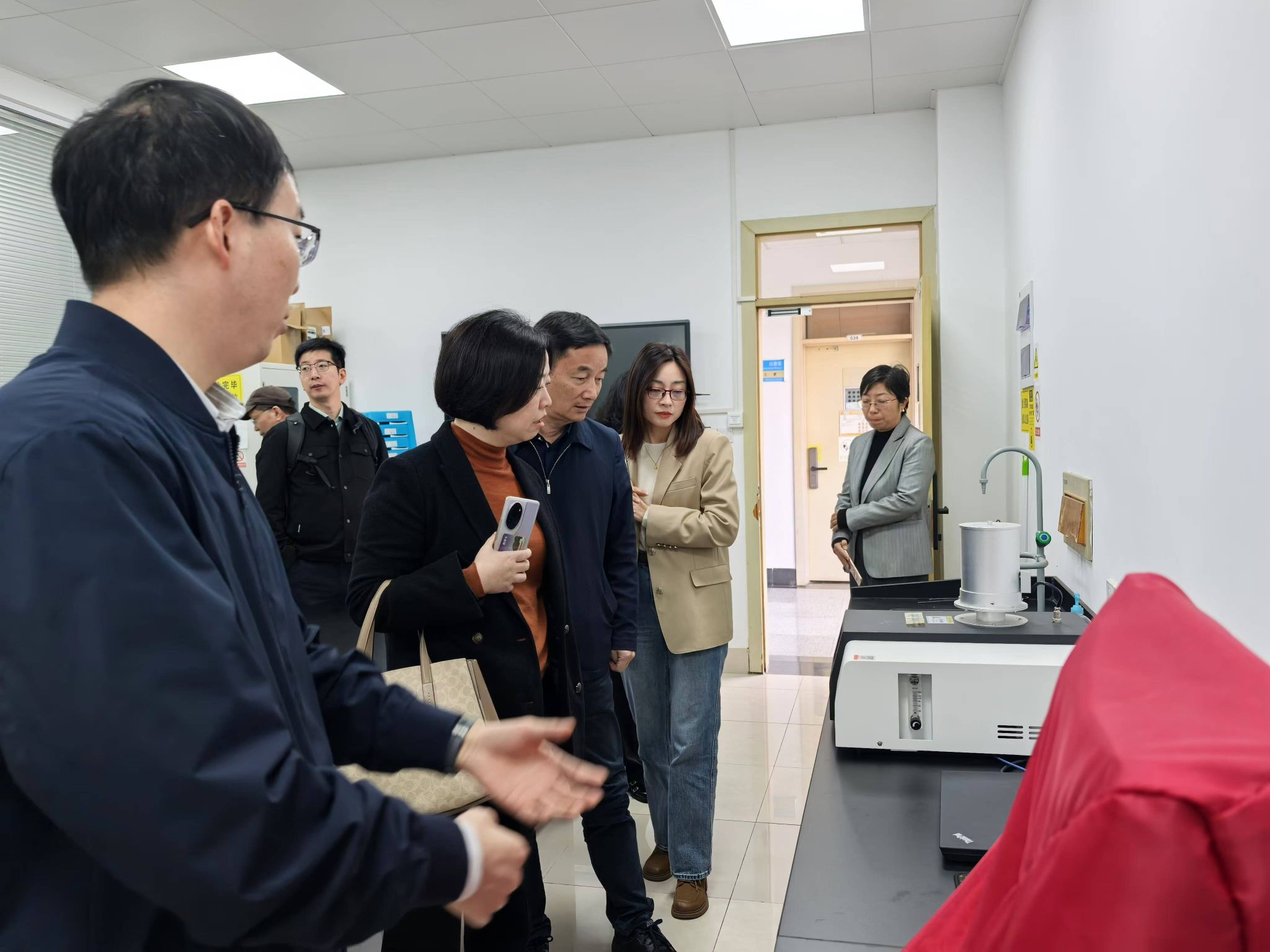 在浙江理工大学材料科学与工程学院,领导班子一行参观了科研实验室、教学实验室并详细交流了实验室管理模式。在座谈交流会上,浙理工材料学院院长张先明介绍了学院的学科发展历史、党建与人才培养、师资概况、平台及科学研究、学科方向与研究所、服务地方经济等。台湾三级片