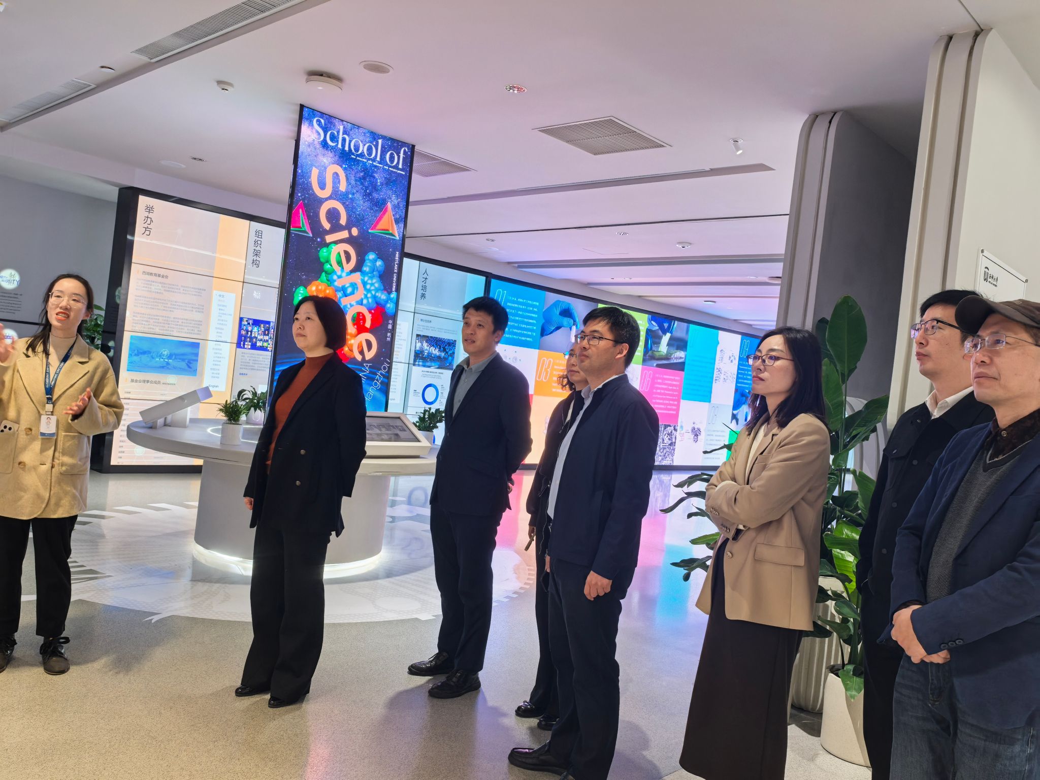 在西湖大学理学院,领导班子一行参观了西湖大学展厅和分子科学公共实验平台、物质科学公共实验平台。在座谈交流会上,西湖大学理学院党委书记、执行院长张国昌介绍了学院架构、学科概况、人员结构、师资力量、教育培养、科学研究及招生情况。双方就学科建设、学生培养、人才引进、实验室建设与管理等展开深入讨论和交流,并交流了今后在学生培养等方面的具体合作举措。