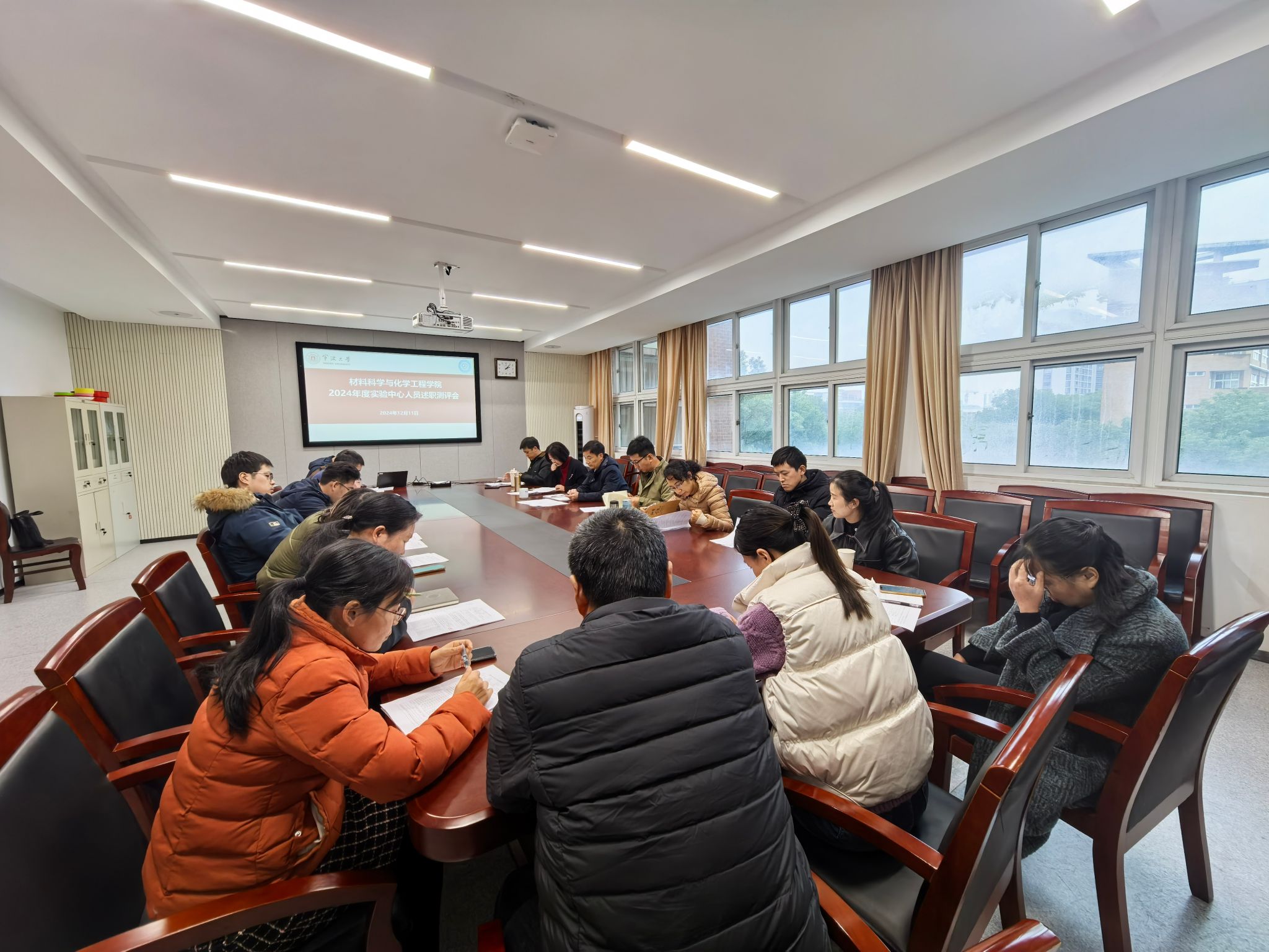 在逸夫材化楼北楼227会议室召开2024年度实验中心人员述职测评会。院领导班子全体成员出席了此次会议,由教学副院长赵传壮主持。
