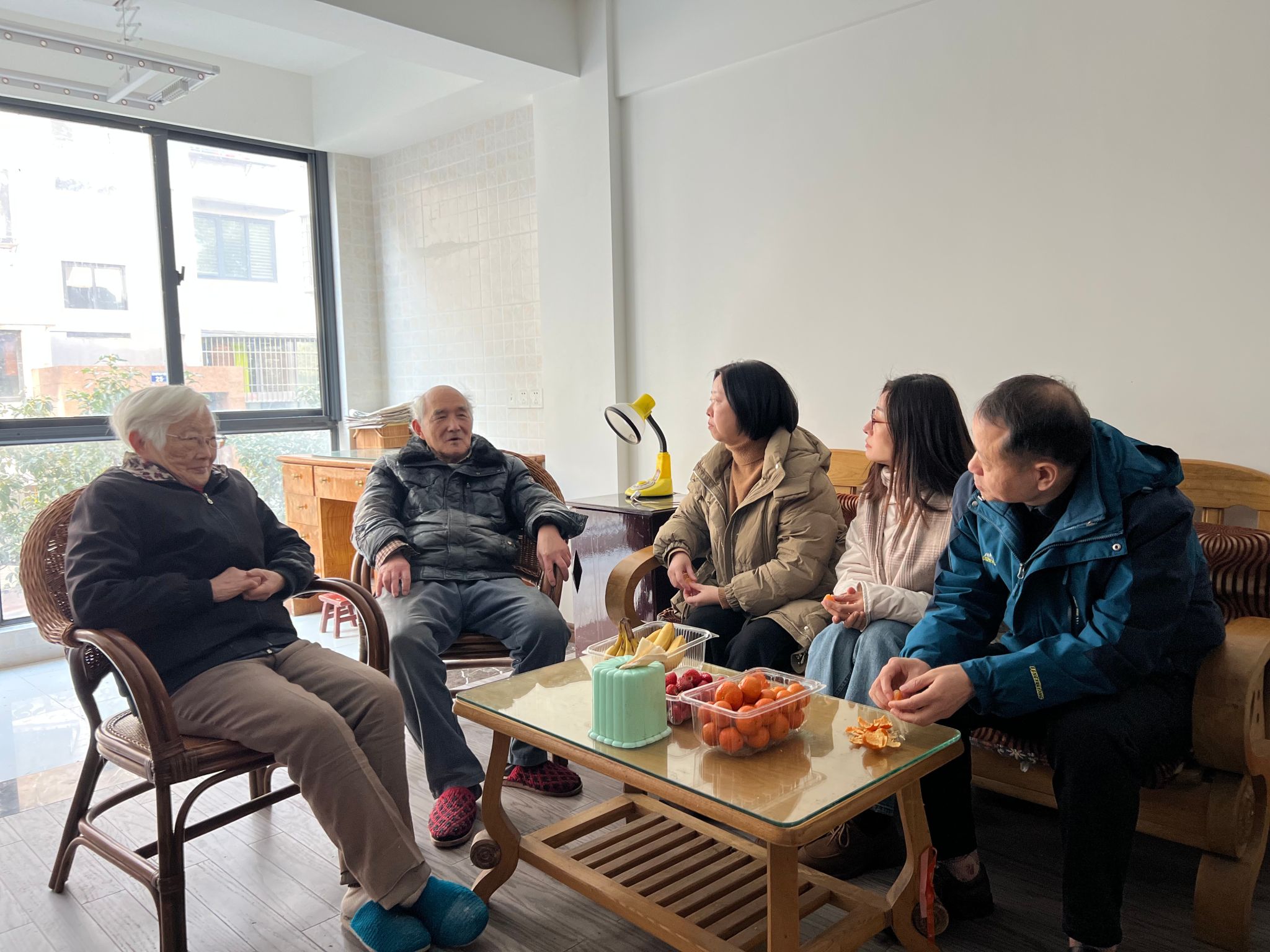 在走访过程中,学院领导们亲切地与离退休教职工交谈,详细询问了他们的身体健康状况和生活情况,表达了对他们为学院发展做出的贡献的深深敬意。陶娟书记还细致地向老教师们介绍了学院在过去一年中在教学改革、科研成果以及学生竞赛获奖等方面取得的显著成绩,让老教师们感受到了学院日新月异的变化。学院领导们还精心准备了慰问品,亲手递给了葛从辛和许锦华两位老师。听到学院各项事业蓬勃发展,老教师们脸上洋溢着欣慰的笑容,他们感慨万分,回忆起当年在学院艰苦创业的点点滴滴,对学院的未来充满了期待。