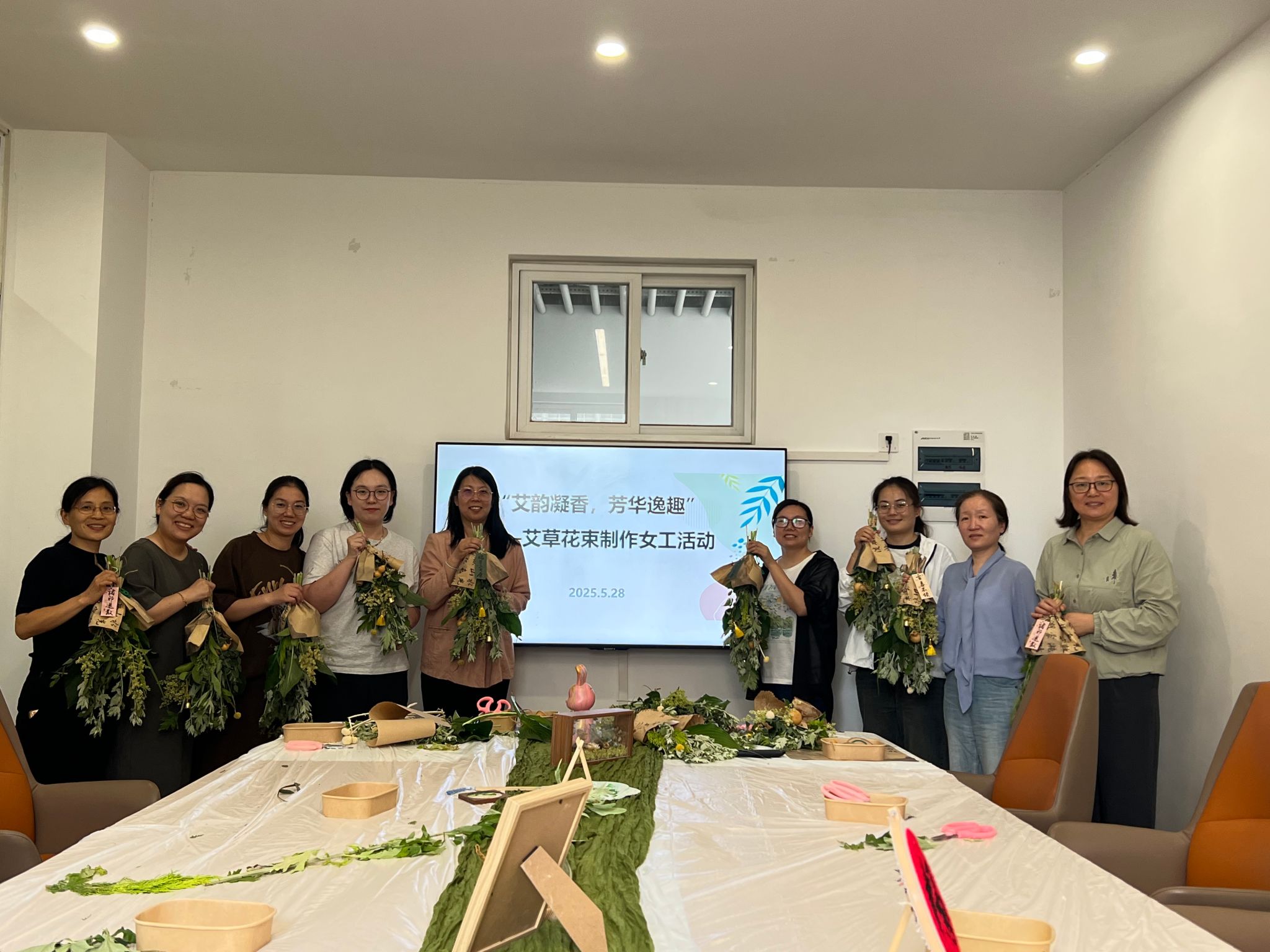 5 月 28 日,台湾三级片 分工会组织开展 “艾韵凝香,芳华逸趣” 艾草花束制作活动。