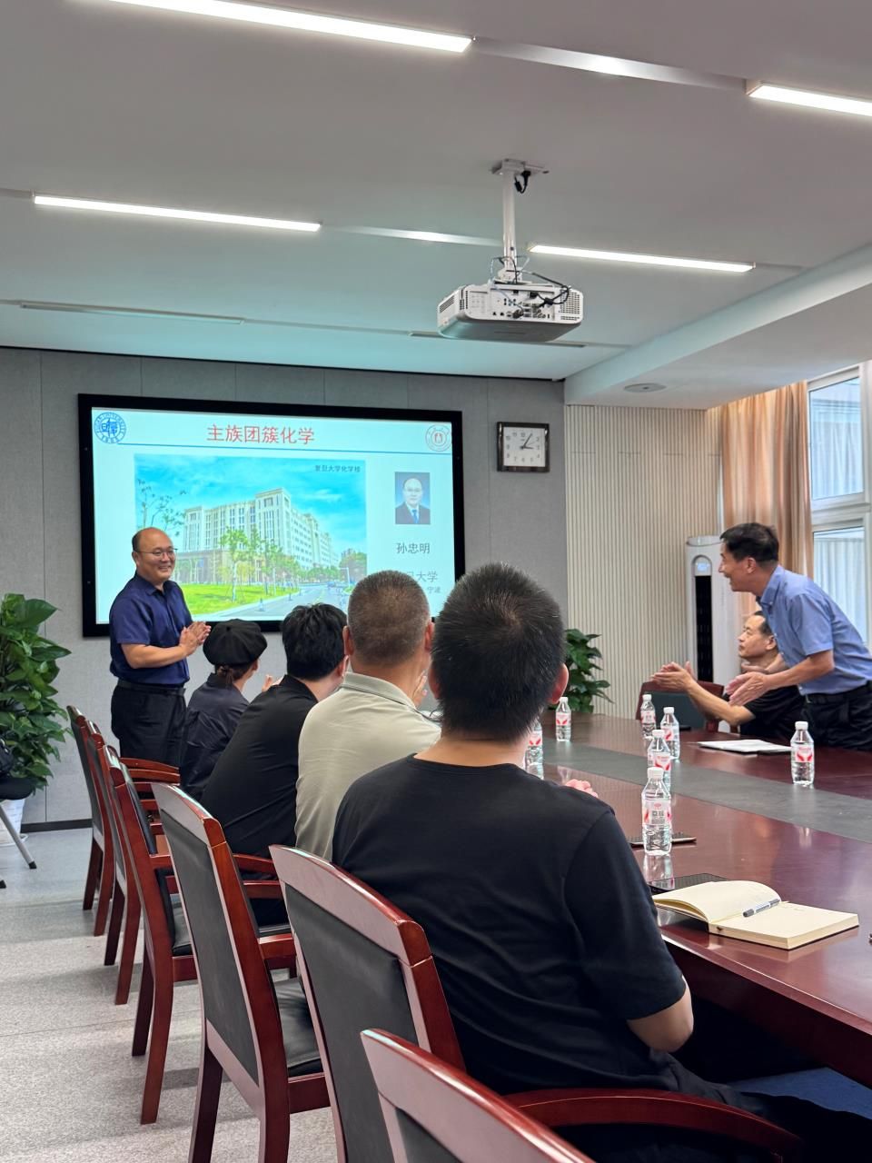 首先,由复旦大学化学系特聘教授孙忠明主讲,主题为“主族团簇化学”。孙忠明教授长期致力于主族团簇化学及金属成键研究,发展了固相-金属有机团簇合成新方法,突破了传统合成方法在获取单晶结构方面的瓶颈。近五年来,他以通讯作者在《Science》《Nature Chemistry》《Nature Synthesis》《Accounts of Chemical Research》《Journal of the American Chemical Society》等国际顶尖期刊发表论文50余篇,多次获《Chemical & Engineering News》专栏评述,并获国家自然科学基金委杰青、优青项目资助。报告中,孙教授围绕主族(金属)团簇的合成策略、形成机制、金属-金属键的本质与规律等关键科学问题,系统介绍了其课题组在主族重元素配位、成键及团簇组装等方面的最新研究进展,为在场师生带来了一场内容翔实、见解深刻的学术分享。