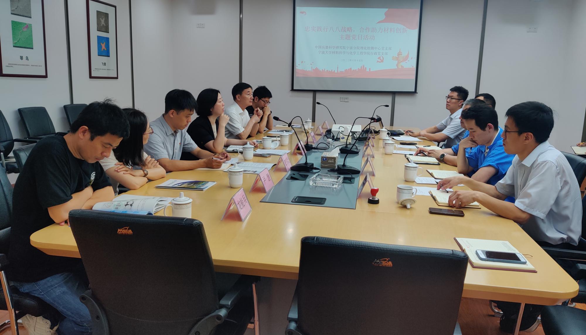 党委书记陶娟、特聘院长丁传凡带队,党政班子全体成员、分团委、实验中心等相关人员一行7人,赴中国兵器科学研究院宁波分院走访调研,洽谈合作。中国兵器工业集团科技带头人倪培君、理化检测中心主任郭智敏等负责人热情接待。