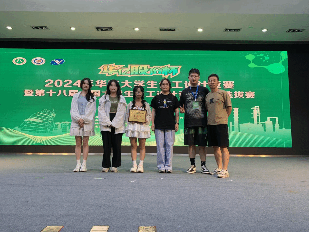 的21级化学工程与工艺专业的15名大三学生参赛。其中蔡安琪、朱国术、李宏光、孙翠玲、袁天赐5人组成的“醇醇有丙”团队获得省赛二等奖,张亚、王俊逸、柯佳雨、黎城兰、朱倩林5人组成的“v我50,分你一翅”团队获得华东赛区一等奖。