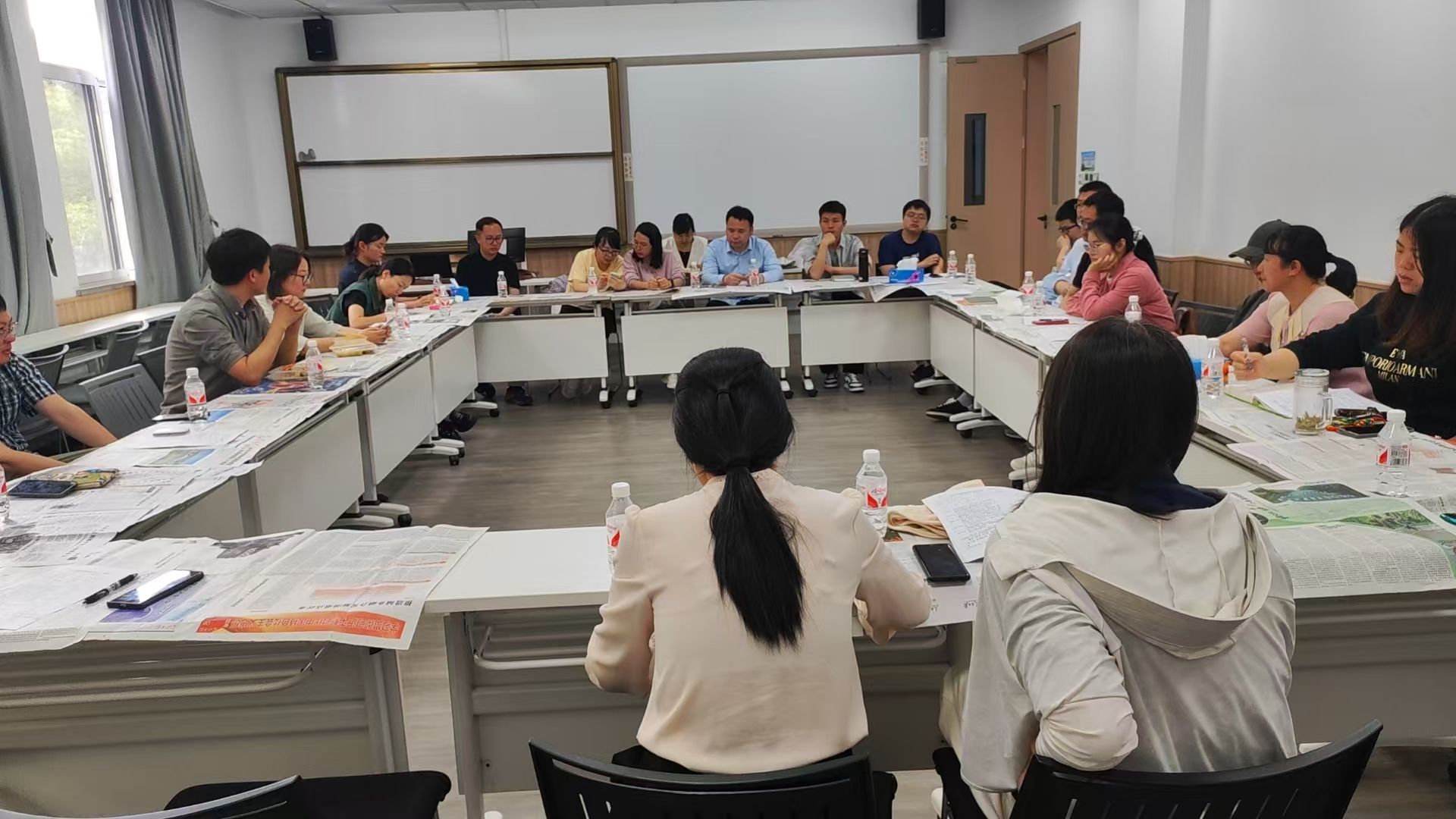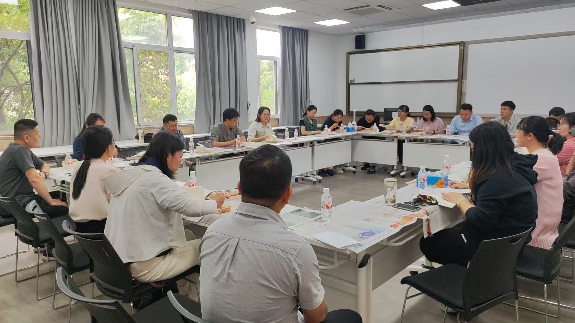在北3-202教室成功开展"名师晒课"活动,谢洪珍教授主讲的《仪器分析》课程吸引全院30余位教师观摩。教学副院长赵传壮教授主持课后研讨。