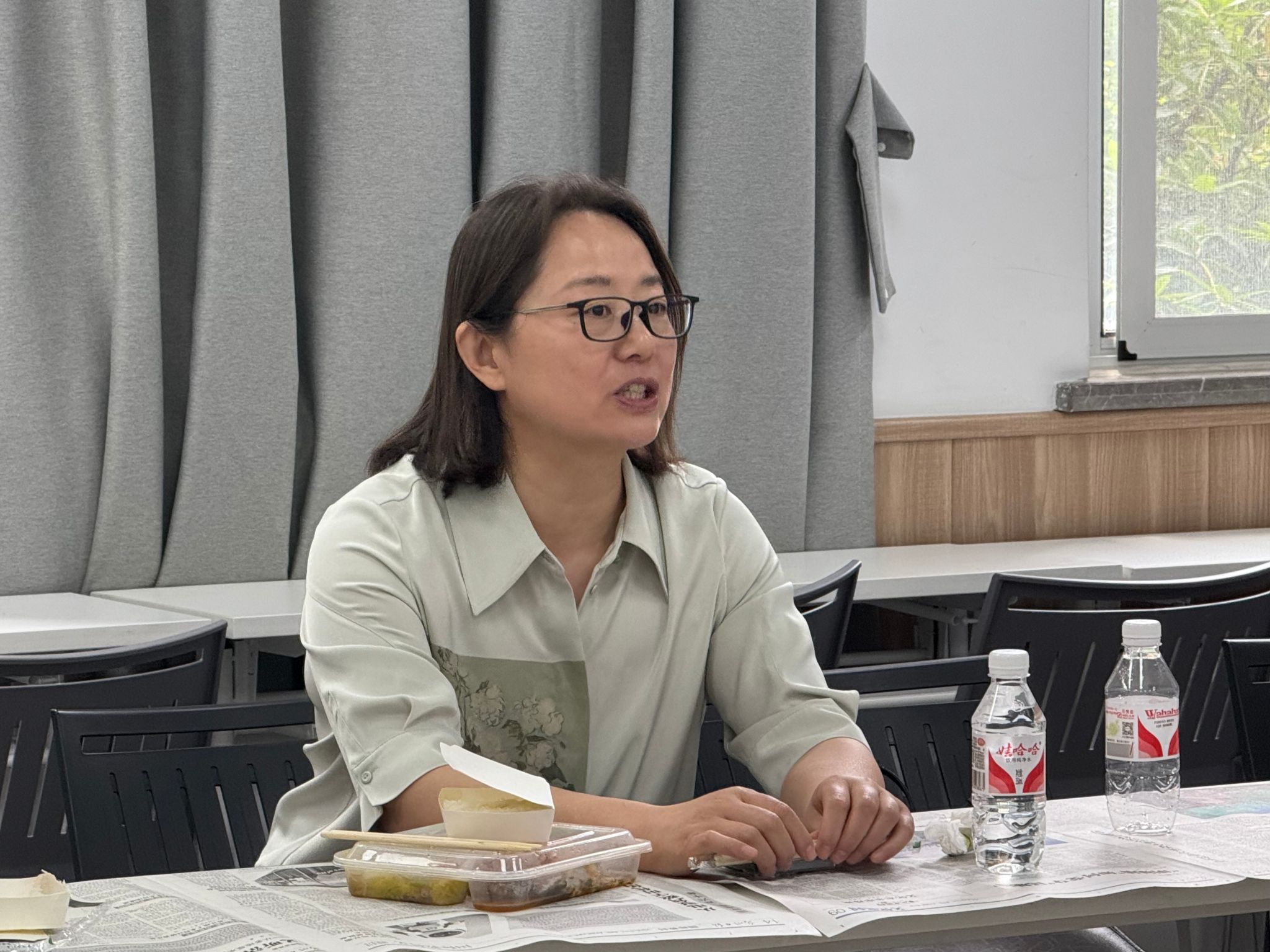 课后研讨中,谢老师分享课程设计思路等教学经验和策略。与会教师在交流听课感受的同时也围绕课堂互动策略、课程思政融入路径等展开热烈讨论。