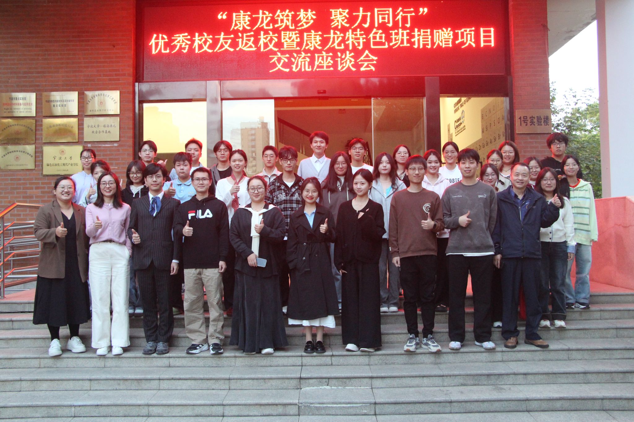 在北区逸夫材化楼北楼1227会议室成功举办“康龙筑梦 聚力同行”优秀校友返校暨康龙特色班捐赠项目交流座谈会。学院党委副书记尹慧、康龙特色班历届优秀校友代表与在校学生代表齐聚一堂,共叙师生情谊,畅谈学习心得,共话未来发展。