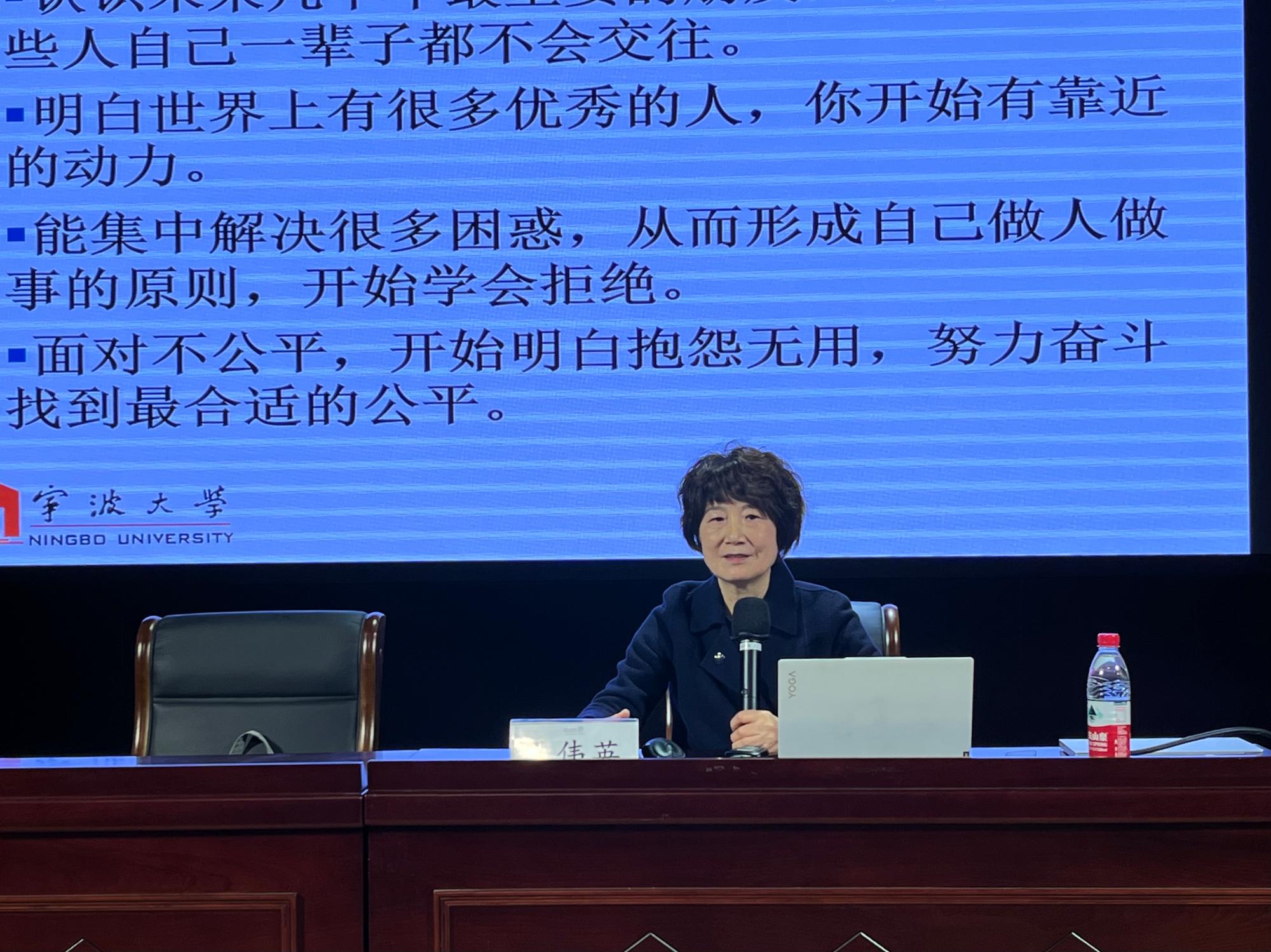 讲座主题是大学生礼仪修养,邀请孔伟英教授主讲。她以热情的师生礼仪互动开启课程的讲授,从大学生学习礼仪的必要性切入,指出讲礼貌、懂礼节、有修养是大学生的形象要求,深入浅出地向同学们讲授了礼仪的本质、人际交往的三大法则和人际交往的底线,引导同学们成为文明的践行者和传播者。她用生动鲜活、贴近现实的案例向同学们讲述了人际吸引的要素,指出良好的礼仪修养能增进人际交往中的吸引力,引导同学们在现场实践中体悟与老师、同学的沟通礼仪,用积极向上、彬彬有礼的人格魅力走好人生之路。