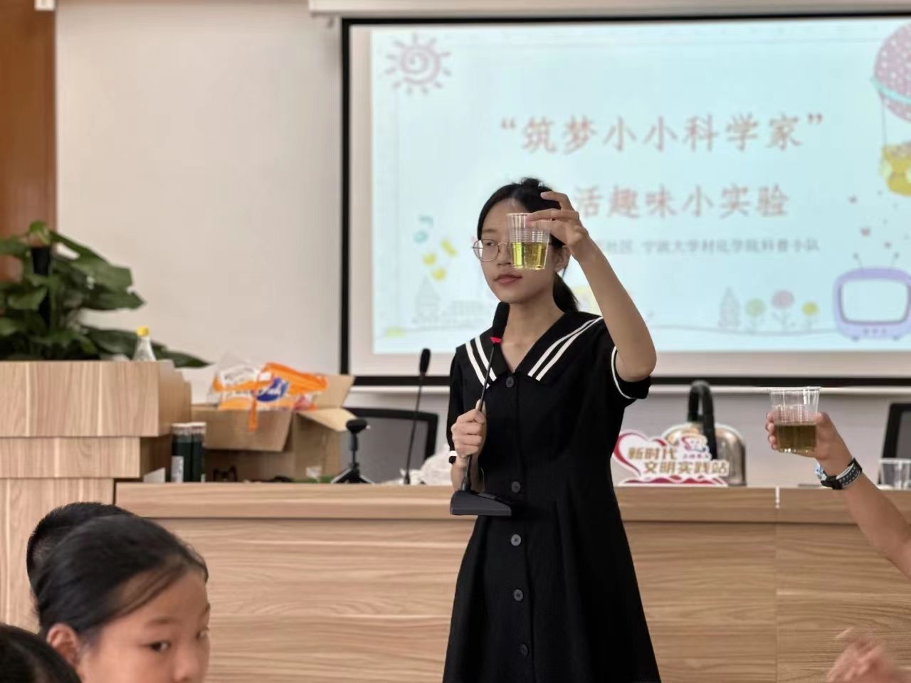 “筑梦小小科学家”蔚蓝科普实践团走进宁波市镇海区汉郡社区,为40多名小朋友开展科普活动。实践团精心设计课程,开展科普知识课外拓展、趣味实验情景剧表演、“自己动手做实验”科学大求真、课业辅导、手工制作等主题活动。