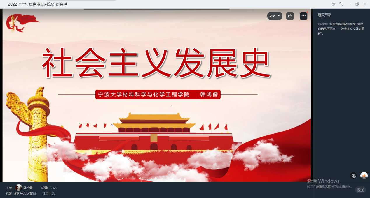 院党委委员韩鸿儒以世界范围内社会主义的发展为切入点,由面到点,重点强调我国社会主义发展的历史进程。他希望全体学员从中学习艰苦卓绝的精神,通过不断学习党的相关知识,提高自身的思想文化水平,为中华民族伟大复兴的中国梦贡献自己的一份力量。