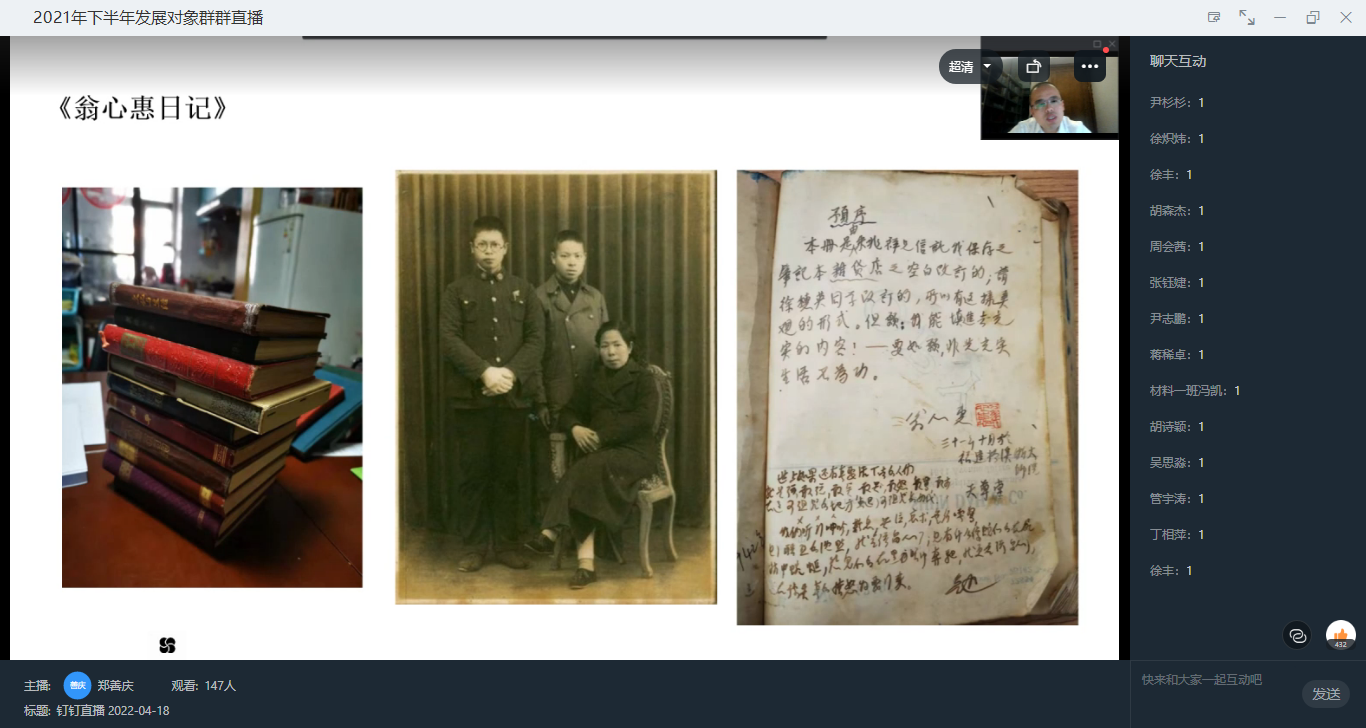马克思主义学院副教授郑善庆主讲党课——“人心是最大的政治——从国共两党兴衰的历史维度解读”,通过老兵之口和历史文献,解答“年轻人为什么去延安”、“怎么去延安”和“去延安做什么”三个问题,分析了抗战时期延安力量发展壮大的根源,强调了国共两党的本质区别——是否为人民服务。