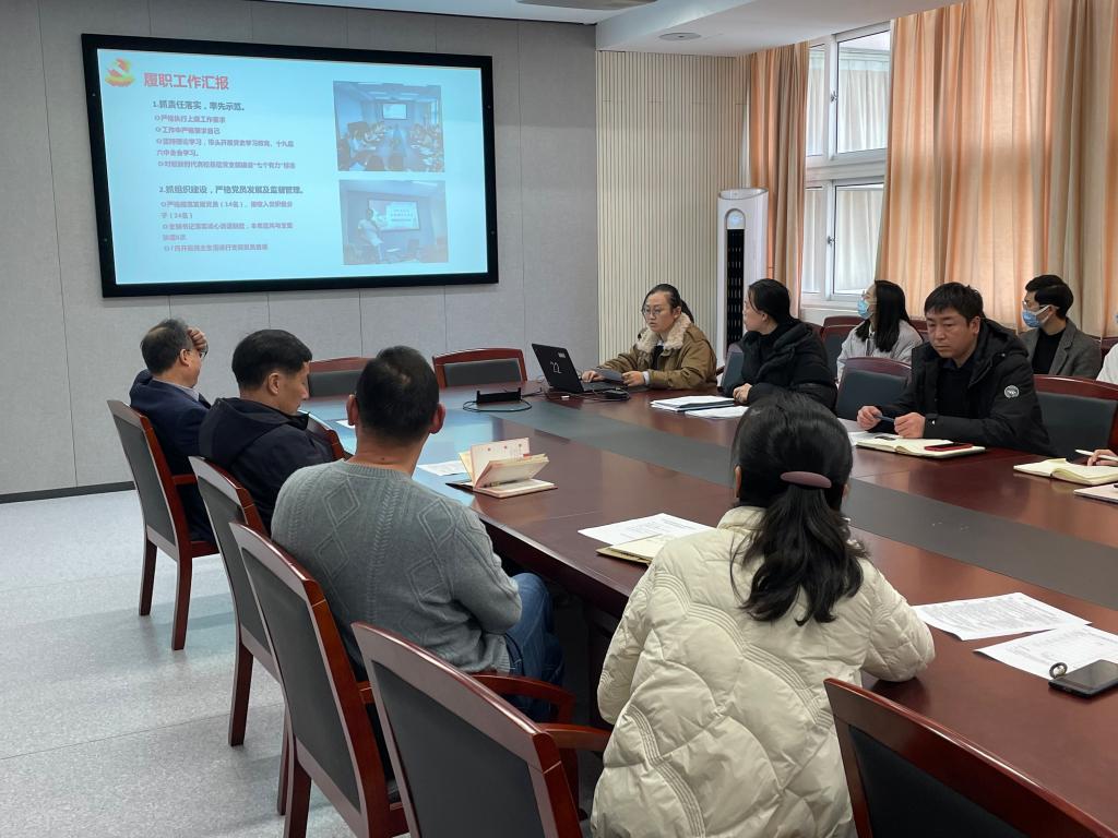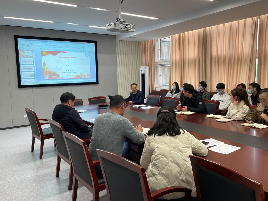 随后,学院4个教师党支部、2个教职工党支部和12个学生党支部书记通过PPT展示进行现场述职,汇报各支部2021年度落实“三会一课”情况、开展党员活动等支部党建工作,以及各支部工作特色亮点与存在的不足。罗云杰对述职的党支部书记逐一点评,他强调党支部书记作为基层党务工作者,一定要扎实落实推进基层党建工作,提炼亮点凝聚特色,切实发挥好党员的模范先锋作用。