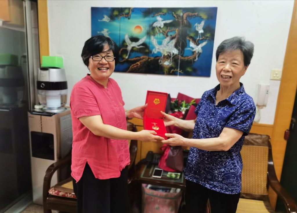 党委书记陈玉涓一行,登门拜访了葛从辛,董静华,许锦华3位离退休老党员,赠送党史系列经典读物及慰问品,还为在党50年以上的董静华老师颁发“光荣在党50年”纪念章,并代表学院党委向老党员们致以崇高敬意和诚挚慰问。